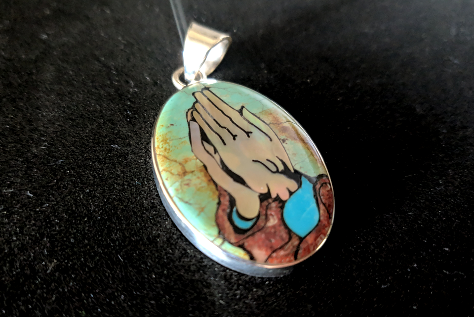 Experience the elegance and significance of our Sterling Silver Praying Hand Inlay Pendant. Enhance your jewelry collection with this timeless piece that embodies both artistry and spirituality.